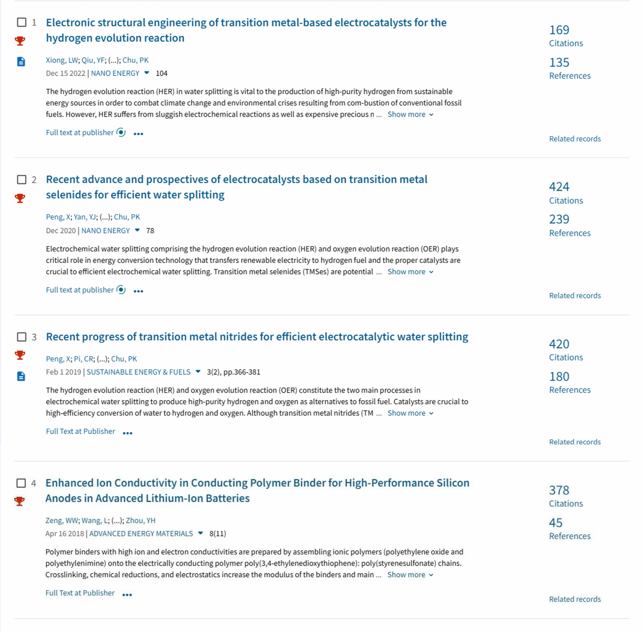 此次在《自然·通讯》的突破,是团队在非贵金属电催化领域长期深耕的成果之一。近年来,团队聚焦于非贵金属电催化剂的表界面调控与反应机理研究,在氢能催化领域取得了一系列创新性成果,多篇成果入选ESI高被引论文、热点论文。