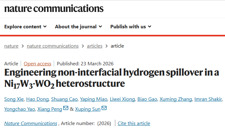 (通讯员:刘虎森)近日,mk体育,MKsports熊礼威与彭祥教授团队在氢能催化研究领域取得重要进展,相关成果以“Engineering non-interfacial hydrogen spillover in a Ni17W3-WO2 heterostructure”为题发表在国际著名期刊《自然·通讯》(Nature Communications, IF: 15.7)上。研究提出了应变梯度工程这一通用设计策略,成功在非贵金属异质结催化剂中实现了高效的“非界面氢溢流”,为低成本、高性能电催化剂的理性设计开辟了新路径。mk体育博士研究生谢松为论文第一作者,彭祥和四川大学孙旭平教授为通讯作者,熊礼威教授为共同作者。mk体育为论文第一单位。