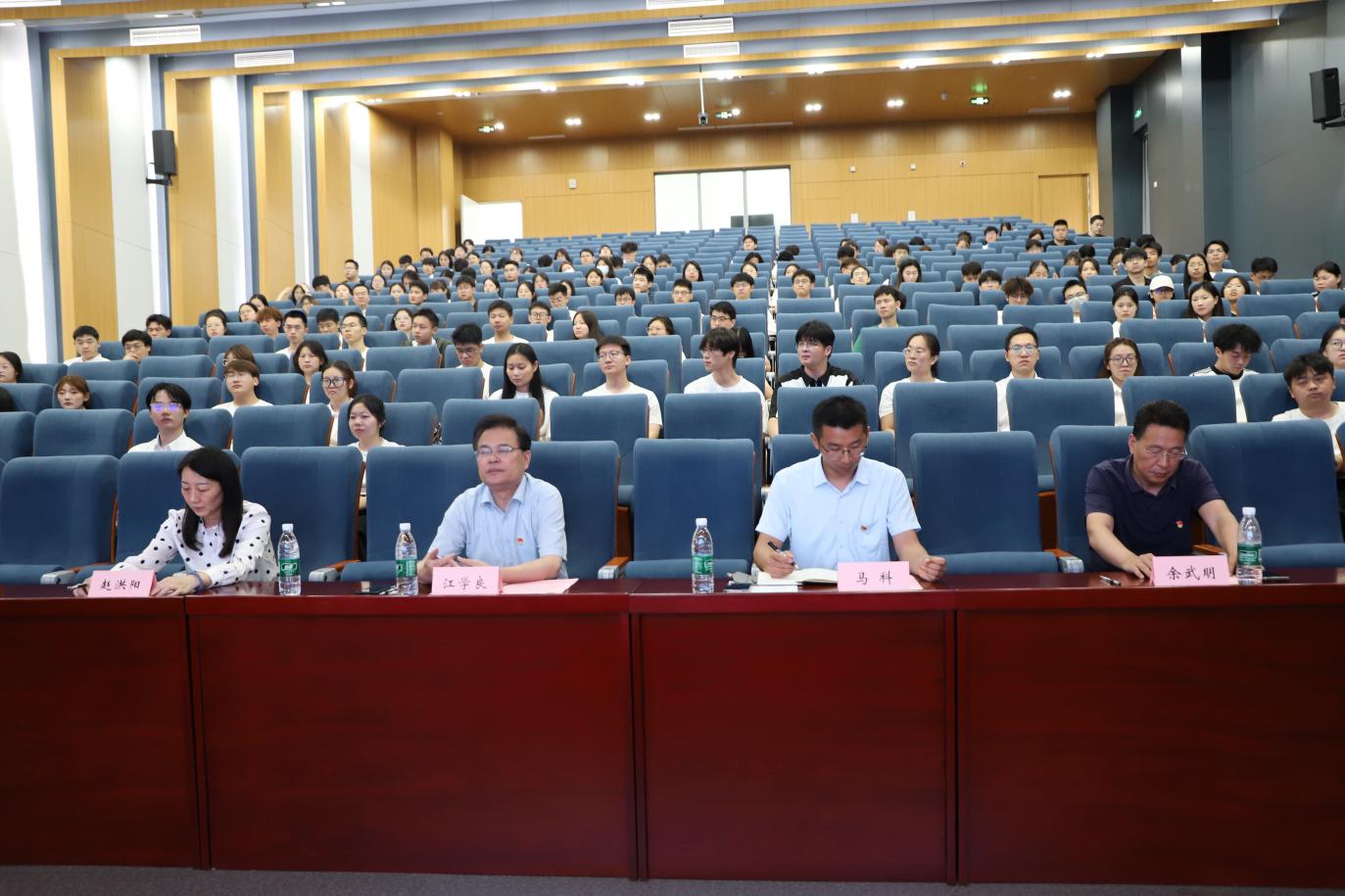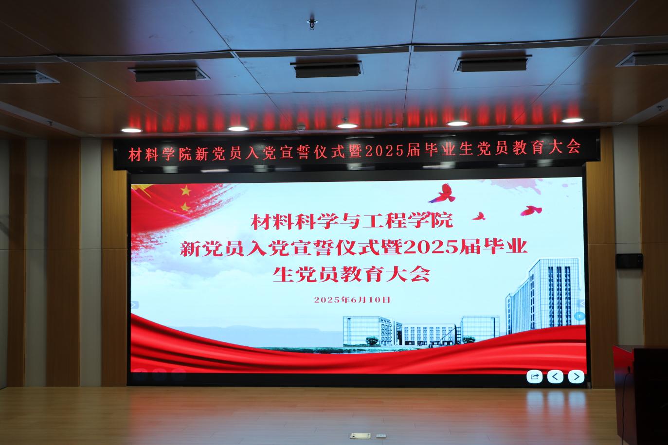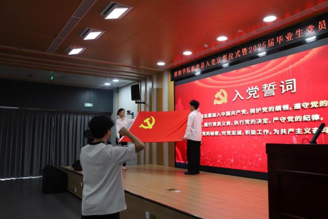 江学良在讲话中向毕业生党员祝贺、新党员欢迎,并对党员提出四点期望:一是以信仰为基,将个人理想融入国家需求,以党章为镜;二是以实干为要,践行“工于至善 筑梦成材”院训,争做“大国工匠”;三是以担当为荣,在芯片材料等关键领域担当,让材料科学服务人民;四是以母校为念,传承“工于至善”精神,以“信仰是灯塔、奋斗是底色、担当是本分”与党员共勉。