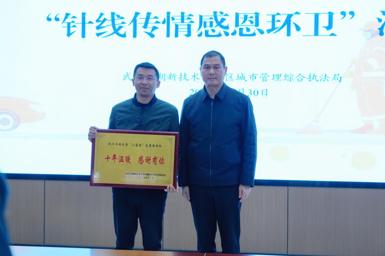 随后,东湖高新区城管局现场向“小蓝钻”志愿服务队颁发了感谢奖牌。