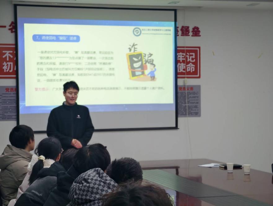 随后,各班班长立即组织主题班会,通过宣读《反诈宣传承诺书》明确防骗底线,集中观看电信诈骗套路等警示视频,揭露“游戏诈骗”“刷单诈骗”等套路陷阱,以受害人网络视频自述强化警示效果,并结合“反电信网络诈骗”课件梳理新型网络诈骗及防范要点,深化学生财产安全意识。