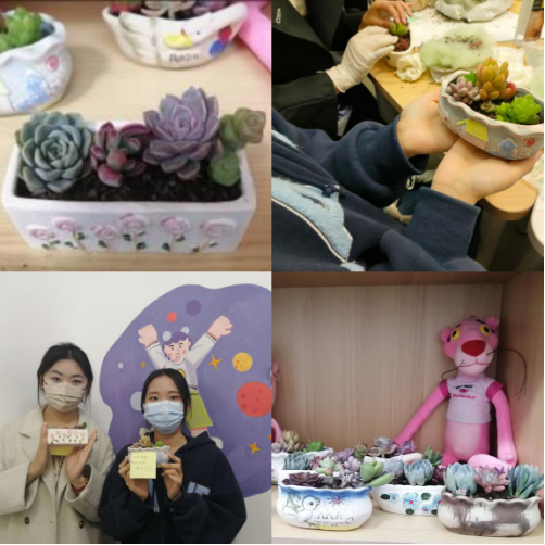 同学们完成作品之后,分别分享了创作心得和活动体验,“开心、新奇,有趣。”“多肉太可爱了,很开心的一次体验。”“感觉自己的动手能力加强了。”大家积极交流、互相帮助,现场充满了欢乐的笑声。