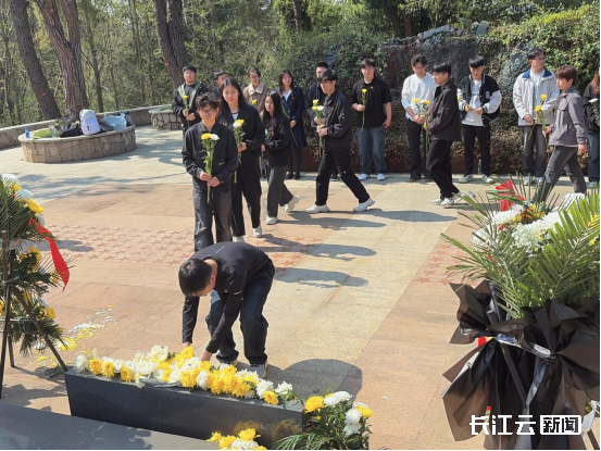 活动现场庄严肃穆,苍松翠柏掩映下的武汉抗战纪念园格外肃穆。师生党员代表整齐列队于武汉保卫战纪念碑前,神情庄重地向革命先烈敬献鲜花,集体默哀三分钟,以最崇高的敬意缅怀为民族独立、人民解放英勇献身的革命先烈,追忆先辈们浴血奋战、不屈不挠的峥嵘岁月。