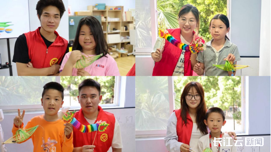 “你看你看!这是我的翻花,我给它起名叫小彩龙!”一位小朋友高高举起自己的作品,兴奋地跑到志愿者身边,眼睛笑弯成了月牙。不一会儿,教室里满是举着竹编小船和龙头翻花奔跑的小小身影,孩子们三五成群展示着自己的得意之作,欢笑声此起彼伏。